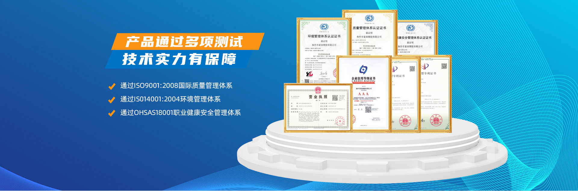 - 焦作市富泉塑膠有限公司,創(chuàng)立于1995年,是一家集研發(fā)、設(shè)計、生產(chǎn)、銷售為一體的大型管材企業(yè)。公司位于太極故里、黃河之濱一一河南焦作溫縣。公司占地128畝,現(xiàn)有職工210余人,其中具有中技術(shù)職稱的19人。生產(chǎn)、檢驗設(shè)備58臺(套),包括PVC實壁管生產(chǎn)線11套、PE實壁管生產(chǎn)線12套、HDPE雙壁波紋管生產(chǎn)線6套、PVC雙壁波紋管生產(chǎn)線5套,檢驗設(shè)備14臺(套)。主要產(chǎn)品有:Φ20mm-630mm、各種壓力規(guī)格的PVCU、PVC-M、PE給水管材,PVC-U節(jié)水灌溉管材,HDPE燃氣和礦用管材,DN200-800mm的HDPE、PVC雙壁波紋管及各種噴灌、滴灌工程材料。承接大中型市政供排水、飲水安全及節(jié)水灌溉等工程。 富泉塑膠公司重視產(chǎn)品的質(zhì)量、安全、環(huán)保和節(jié)能,在同行業(yè)中率先完成了“新華節(jié)水產(chǎn)品認證”,全方面通過ISO9001:2008國際質(zhì)量管理體系、IS014001:2004環(huán)境管理體系和OHSAS18001職業(yè)健康安全管理體系的一體化導入,并建立起規(guī)范的現(xiàn)代企業(yè)管理體系。公司以“質(zhì)量”為先導,采用質(zhì)量跟蹤、多環(huán)節(jié)把關(guān)的方法,組建具有行業(yè)水準的企業(yè)技術(shù)檢測中心,常年委托水利部節(jié)水灌溉設(shè)備檢測中心、河南省產(chǎn)品質(zhì)量監(jiān)督檢驗院對產(chǎn)品跟蹤檢測,并由中國人民保險公司承保產(chǎn)品質(zhì)量。公司連續(xù)多年被河南省水利廳確定為“安全飲水設(shè)備、節(jié)水灌溉設(shè)備”定點生產(chǎn)企業(yè),并獲得“中國名優(yōu)產(chǎn)品”“質(zhì)量、服務、信譽AAA企業(yè)”“河南省**產(chǎn)品”“河南省水利企業(yè)”“河南省守合同、重信用企業(yè)”等榮譽稱號?! 「蝗苣z公司堅持“用戶為上”的服務理念,長期以來,全方面關(guān)注客戶價值,不斷提升服務水平。服務隊伍常年為客戶的產(chǎn)品設(shè)計、施工、安裝提供合理的方案和全程細致、周到、**、快捷的技術(shù)服務。公司自成立以來,一直堅持以人為本的宗旨,塑造企業(yè)形象,并致力于新產(chǎn)品的開發(fā),憑借雄厚的技術(shù)開發(fā)能力,先進的工藝制造流程,嚴格的質(zhì)量管理保證體系,優(yōu)良的售后服務網(wǎng)絡,已成為河南省大的飲水、灌溉及排水管材設(shè)備制造商。產(chǎn)品暢銷全國,而且還以公司雄厚的綜合實力在業(yè)界中占據(jù)著重要的地位。